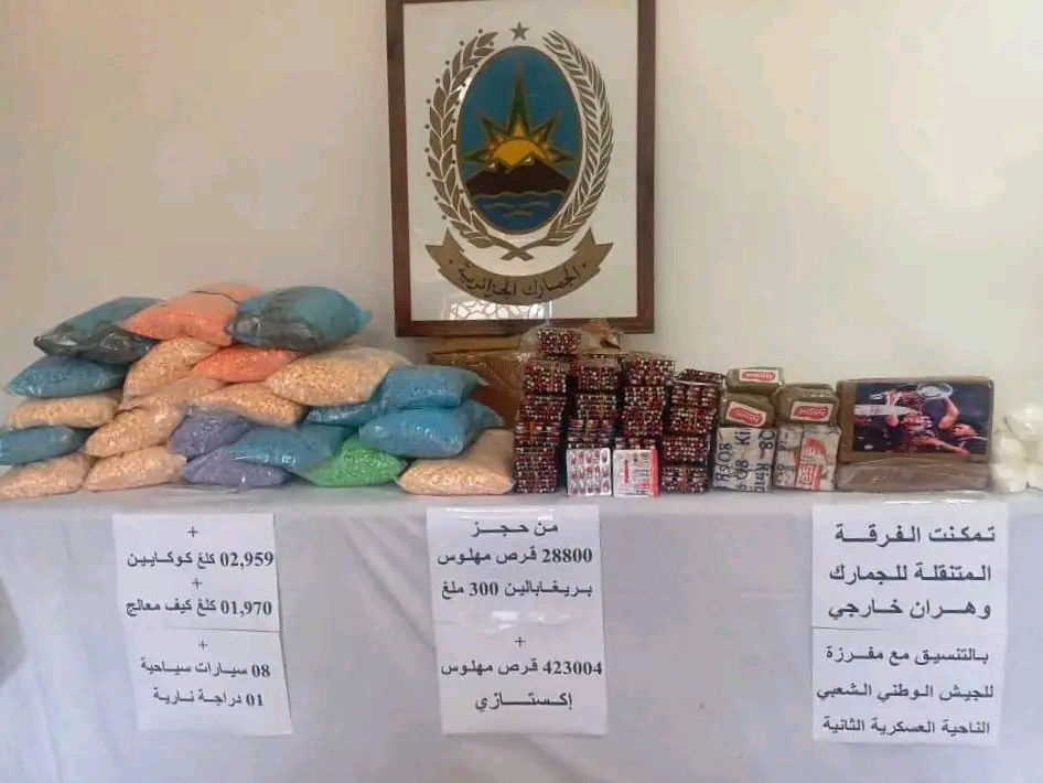 نجحت المصالح العملياتية في توجيه ضربة موجعة لبارونات المخدرات بوهران. العملية نفذتها الفرقة المتنقلة التابعة لمفتشية أقسام الجمارك (وهران خارجي) بالتنسيق المحكم مع مفرزة من الجيش الوطني الشعبي.