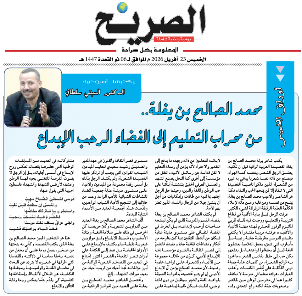 هذا هو الشاعر المميز محمد الصالح بن يغلة الذي يكتب القصيدة وكأني به ينحتها من صخر، يعمل دوما على أن يجعل من نصه سامقا ساميا في دلالته والقضايا التي طرقها في شعره، لا يتردد عن البحث في مضان اللغة وقواميسها ومجلداتها للكشف عن ظلال الألفاظ وإسقاطاتها النفسية، كي يقدّم نصّا يعكس روحا وثابة للتألق والإبداع.