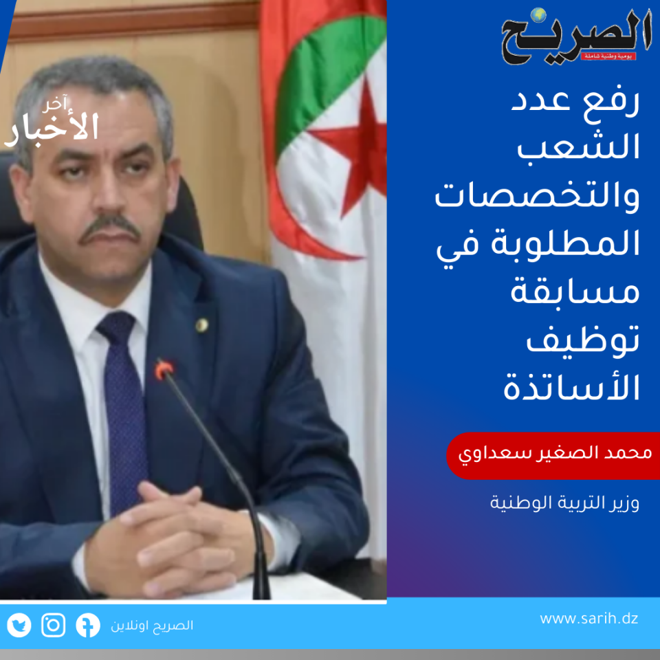 أوضح وزير التربية الوطنية، محمد الصغير سعداوي، أنه تم توسيع عدد الشعب والتخصصات المطلوبة للتوظيف والترقية في الأسلاك والرتب الخاصة بقطاع التربية الوطنية، في القرار الوزاري المشترك المؤرخ في 28 سبتمبر 2025 والذي يحدد قائمة الشهادات المطلوبة، مقارنة بالقرار الوزاري المشترك المؤرخ في 10 مارس 2016، الملغى.