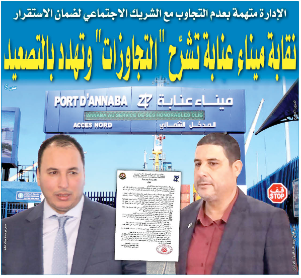 وتجدر الإشارة لكون نقابة المؤسسة لميناء عنابة كانت قد أخطرت العمال والأمانة الولائية للإتحاد العام للعمال الجزائريين ومفتشية العمل من خلال بيان صادر مع نهاية الأسبوع الماضي حول عدة نقاط بالميناء، وأكدت في بيانها، الذي اطلعت عليه “الصريح” بأنه “انطلاقا من مسؤولياتها النقابية والدفاع عن حقوق العمال ومطالبهم المشروعة والقضاء على ما وصفته بـ” التجاوزات الصادرة من طرف الإدارة”،” وفي ظل الظروف الراهنة التي تمر بها المؤسسة، بذلت النقابة جهدا متواصلا وبأقصى درجات الصبر والمسؤولية وأرقى أساليب الحوار من أجل إيجاد حلول توافقية مع إدارة المؤسسة لحفظ مكتسبات العمل ولتصحيح التجاوزات المسجلة وخلق جو من الاستقرار المهني والاجتماعي” وفق البيان.