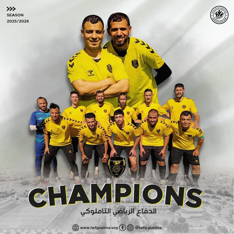 نجح فريق الدفاع الرياضي التاملوكي في تحقيق إنجاز مهم بعد تتويجه رسميا بلقب بطولة القسم الشرفي لولاية قالمة، ليضمن بذلك الصعود إلى القسم الجهوي الثاني لرابطة عنابة لكرة القدم، وسط أجواء احتفالية كبيرة عاشها أنصار النادي ومحبو الكرة في مدينة تاملوكة.