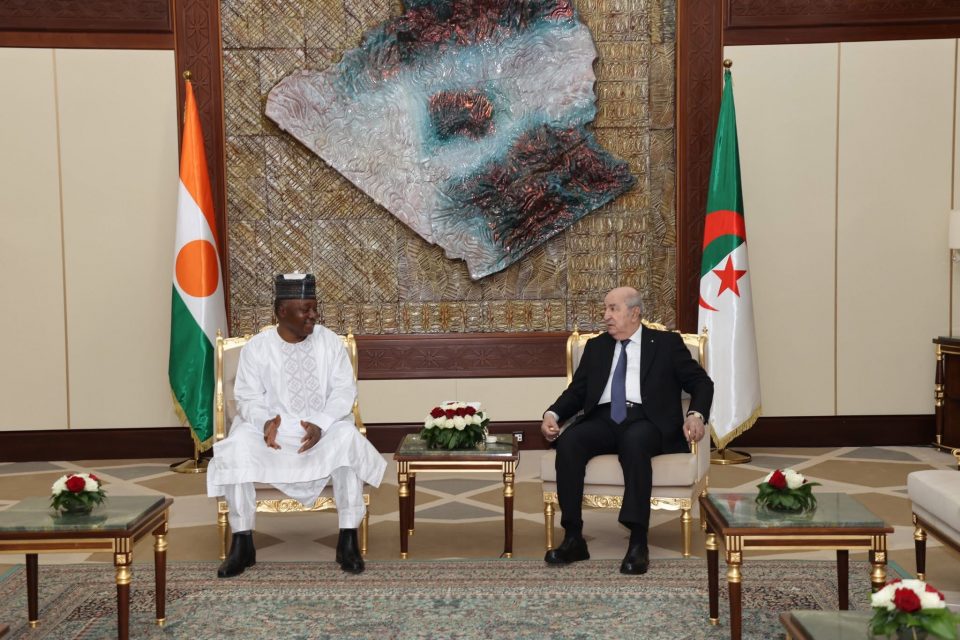 أجرى الرئيس عبد المجيد تبون محادثات على انفراد مع رئيس جمهورية النيجر الذي يقوم بزيارة أخوة وعمل إلى الجزائر على رأس وفد هام.
