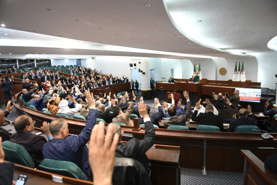 و قد جرى التصويت في جلسة علنية ترأسها رئيس المجلس الشعبي الوطني, إبراهيم بوغالي بحضور وزير الداخلية والجماعات المحلية والنقل, السعيد سعيود, و وزيرة العلاقات مع البرلمان, نجيبة جيلالي.