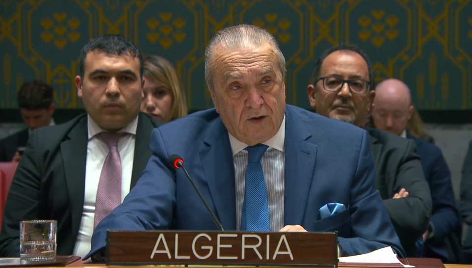 ألقى ممثل الجزائر الدائم لدى الأمم المتحدة، عمار بن جامع، الاثنين، كلمة في جلسة لمجلس الأمن حول الحالة في الشرق الأوسط، بما في ذلك قضية فلسطين.