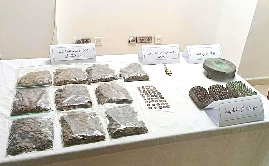 في إطار الجهود التي تبذلها وزارة الثقافة والفنون لحماية التراث الثقافي الوطني، وبفضل التنسيق المؤسساتي المحكم بين مصالح الدرك الوطني والهيئات المختصة التابعة لقطاع الثقافة والفنون، تم اكتشاف وحجز كنز نقدي يضم ما يقارب 10200 قطعة نقدية، من مادة البرونز ، تُشير المعطيات الأولية إلى أنها تعود إلى الفترة الرومانية (القرن الرابع ميلادي)، إلى جانب ثلاثة (03) ممتلكات ثقافية أخرى لا تزال قيد الدراسة والتحديد العلمي، وذلك حسب ما أفادت به وزارة الثقافة في بيانها.