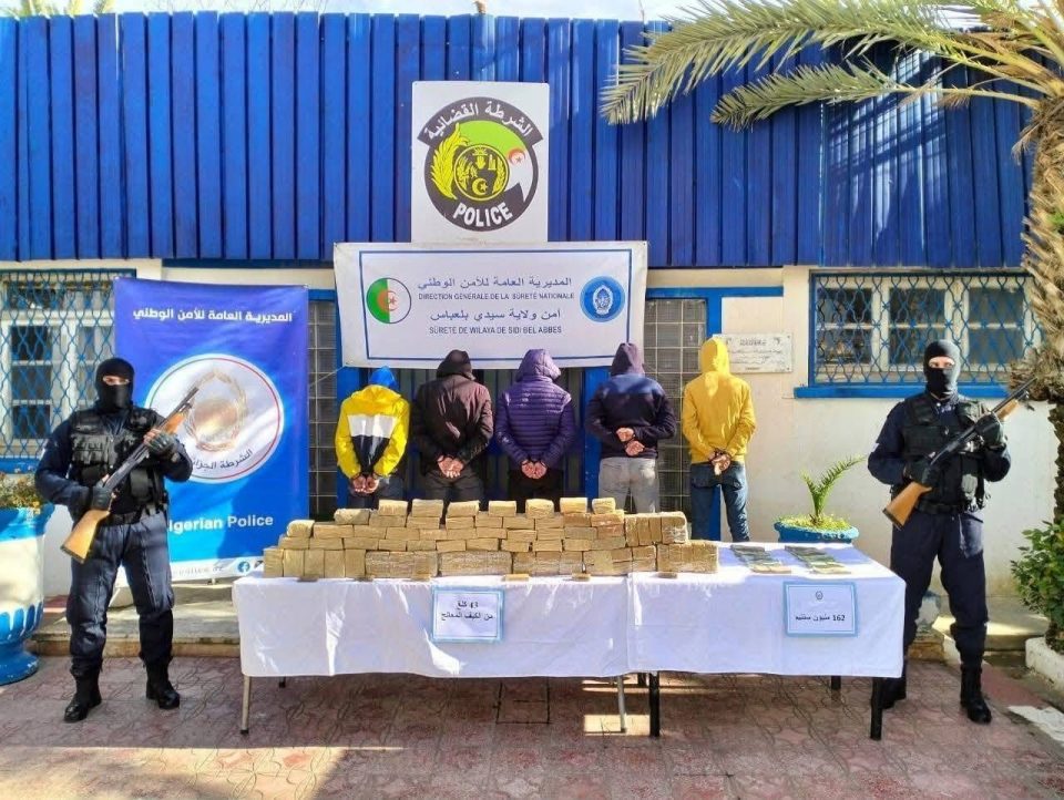 تمكن الأمن الوطني من الإطاحة بشبكة إجرامية منظمة مكونة من 5 أشخاص بسيدي بلعباس وحجز أزيد من 43 كلغ من الكيف المعالج مصدرها المغرب، وذلك وفق ما أفاد به بيان لذات المصالح.