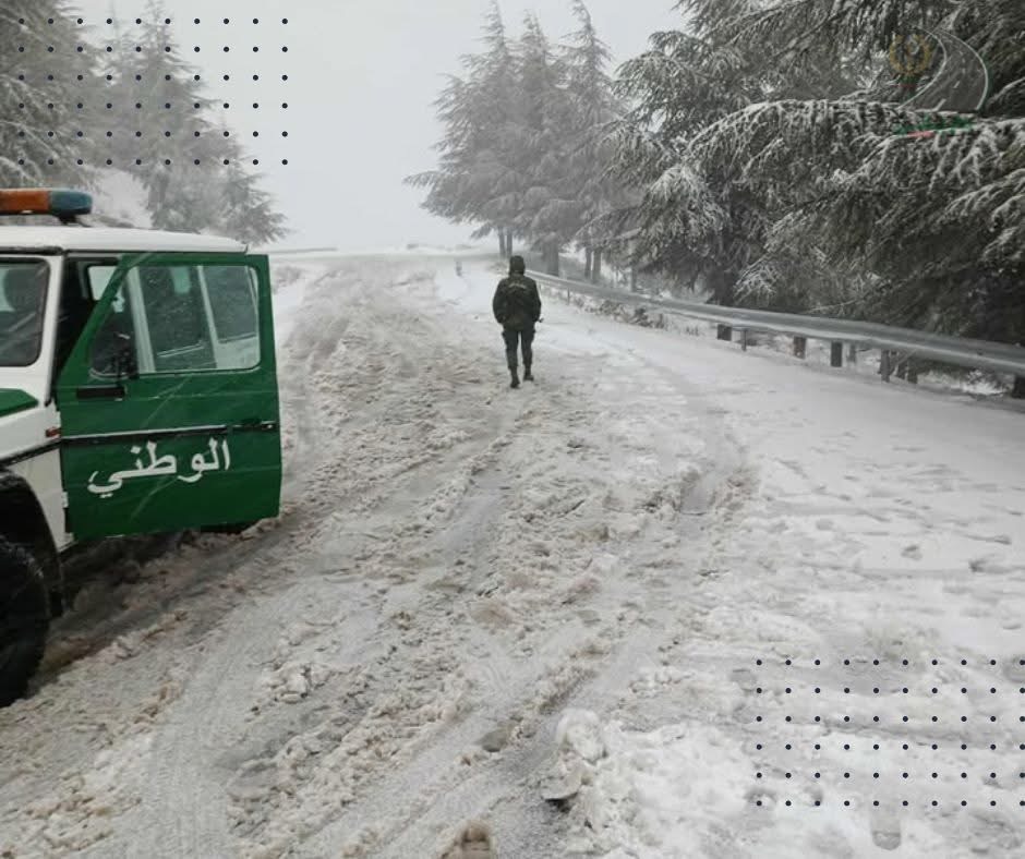 ودعا الدرك الوطني مستعملي الطريق إلى توخي الحيطة والحذر في ظل استمرار التقلبات الجوية، خصوصًا عبر المناطق الجبلية التي تشهد تساقطًا كثيفًا للثلوج.